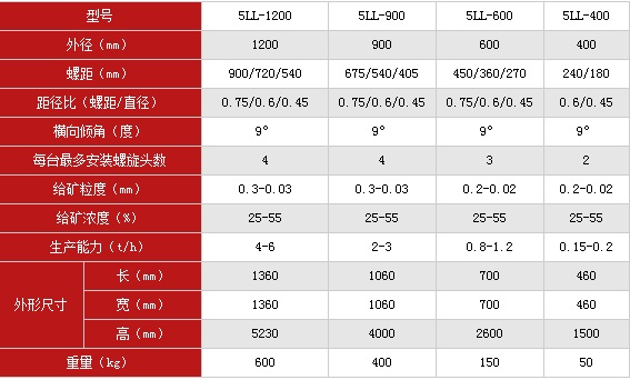螺旋溜槽技术参数: